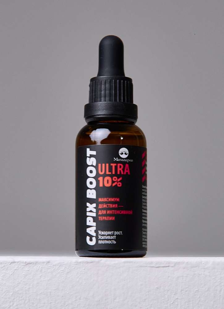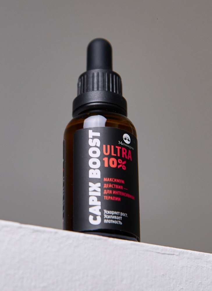 CAPIX BOOST 10% — высокодозный несмываемый лосьон для кожи головы с акцентом на Capixyl 10%. Лёгкая водная формула для курсового применения при выпадении и снижении плотности волос.
